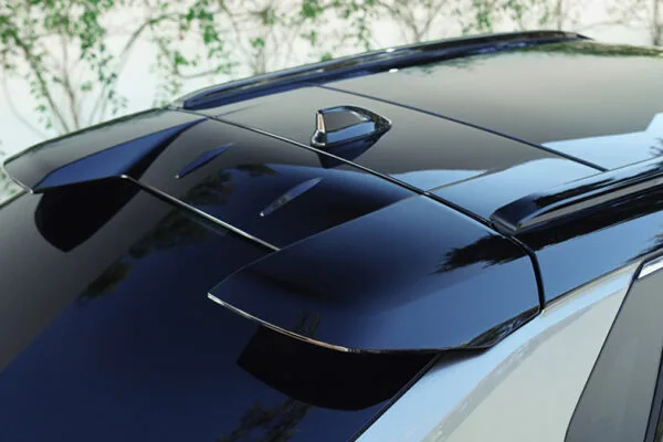 Siluet tajam pada bagian lampu depan dan bagian grille dengan desain unik menghasilkan wajah yang futuristik dengan sentuhan elegan. Spoiler pada bumber dan juga atap mobil menambah aerodinamikanya. Kemudian ada juga panoramic roof yang indah menemani Anda selama berkendara.