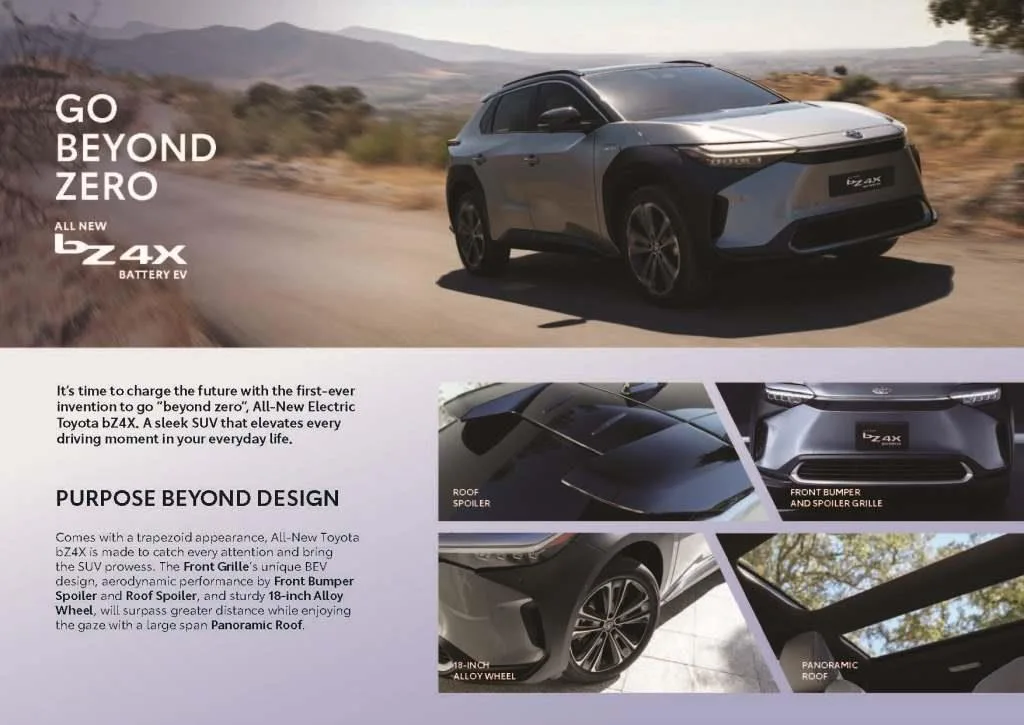Perkenalkan, mobil listrik pertama dari Toyota telah resmi hadir di Indonesia. Kendaraan Battery Electric Vehicle (BEV) yang secara model masuk dalam kategori SUV ini menawarkan warna baru bagi industri mobil listrik Indonesia. Toyota bZ4X siap menggebrak pasar mobil listrik Indonesia dengan segudang fitur dan teknologinya.